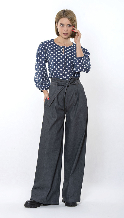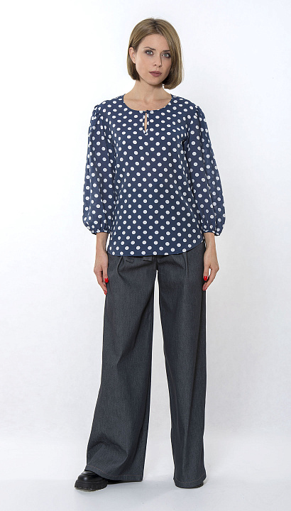 Элегантная блуза в горошек с длинным рукавом