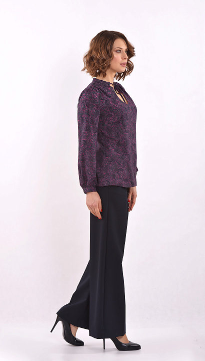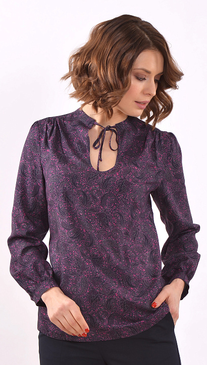 Фиолетовая блуза с длинным рукавом и вырезом-капелькой