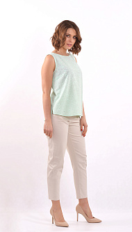 Блуза без рукавов с круглой горловиной и разрезами в боковом шве.