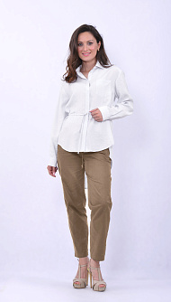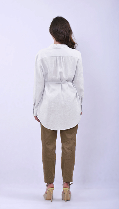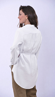 Белая блуза с поясом на талии и классическим воротником