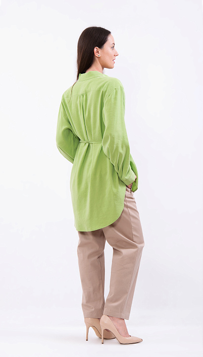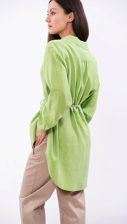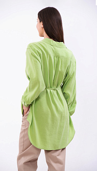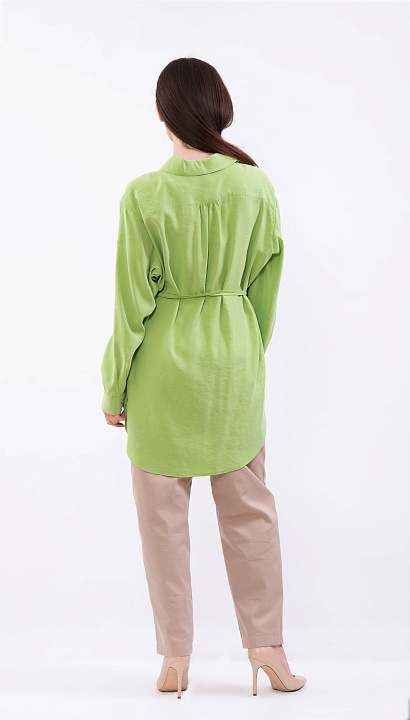 Светло-зелёная блуза с поясом и удлинённым низом