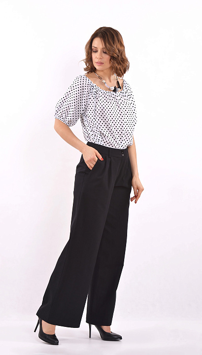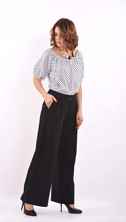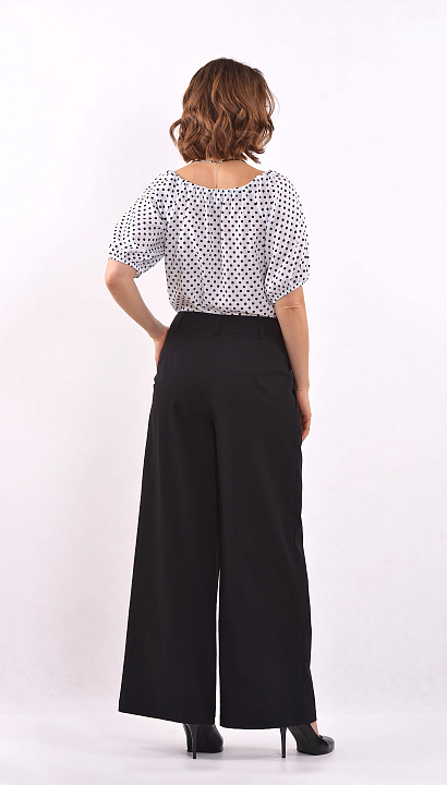Брюки палаццо со шлёвками на высокой посадке c карманами Цвет: чёрный Состав: 70%хлопок 30%лён
