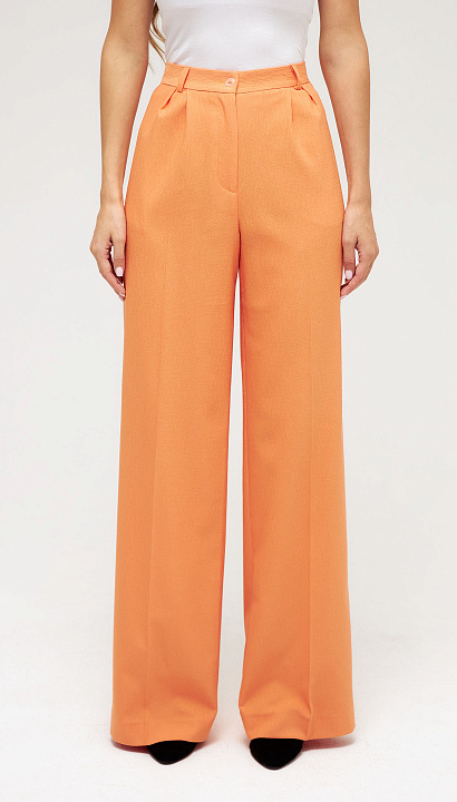 Длинные широкие брюки с застёжкой на талии и карманами в боковом шве.