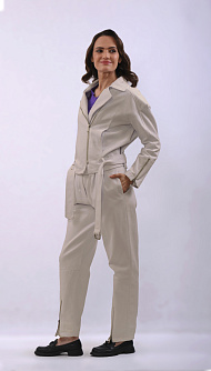 Бежевые классические брюки с молниями на манжетах