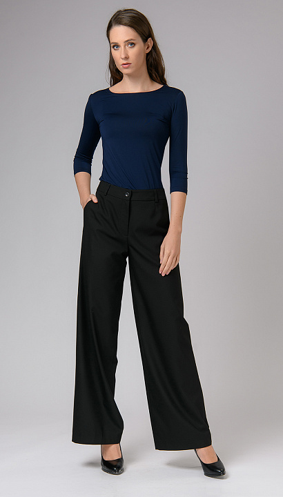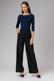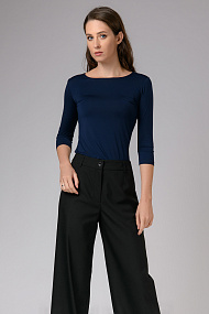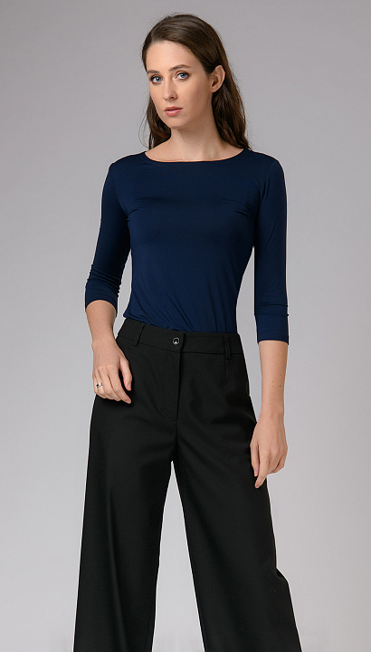Блуза темно-синего цвета с рукавом 3/4 и круглым вырезом горловины. Можно носить в качестве футболки, а также как нижний слой под жакет или рубашку..