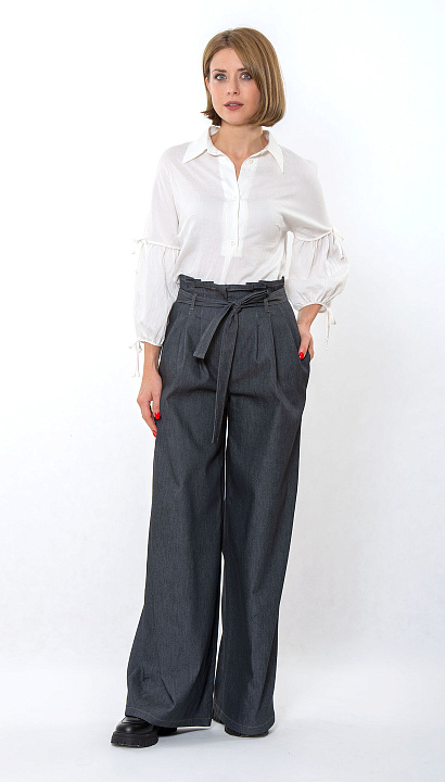 Широкая блуза "кимоно" с центральной застёжкой, со сборкой на рукавах и манжетах.