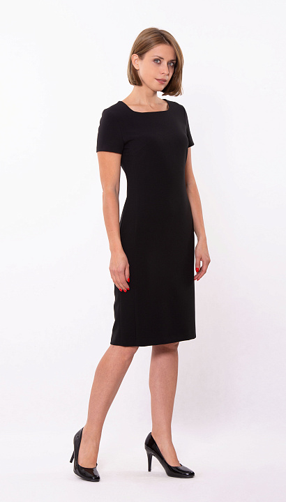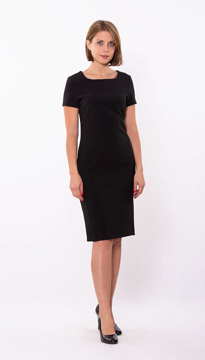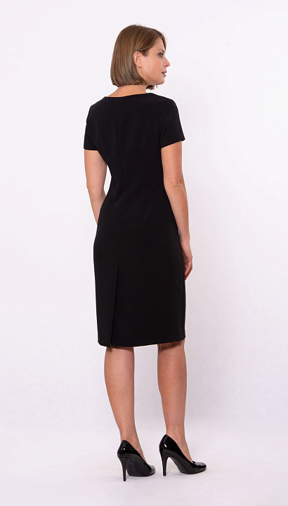 Платье-футляр будет одинаково хорошо смотреться как в деловой обстановке, так и на празднике, просто добавьте к нему яркие аксессуары. Длина до колена, короткий рукав, круглый вырез горловины. Цвет:чёрный Состав:38%полиэстер 30%шерсть 30%вискоза 2%спандекс