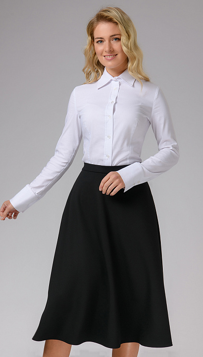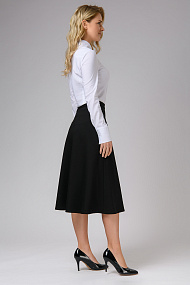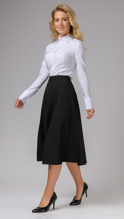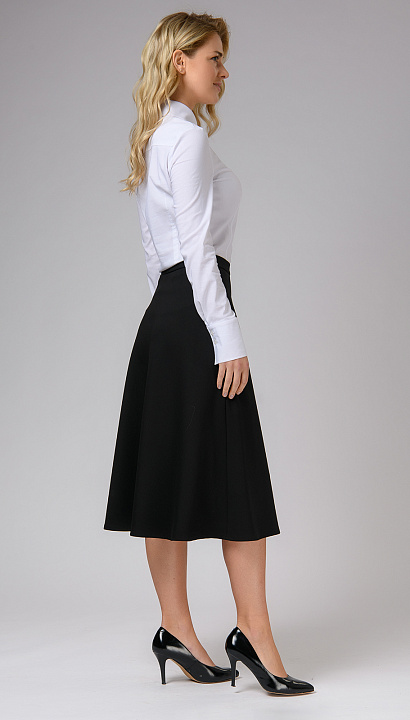 Юбка длины миди черно цвета станет прекрасной основой для базового гардероба. Ее легко сочетать с любым верхом. Длина миди и расклешенный силуэт подходят к любому типу фигуры.