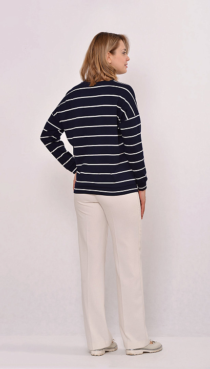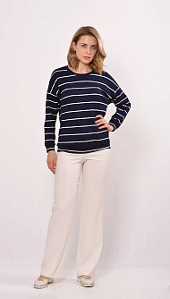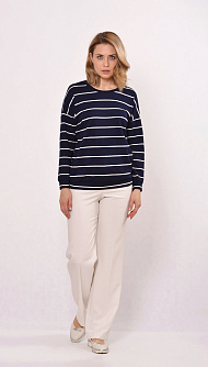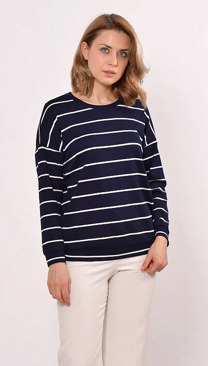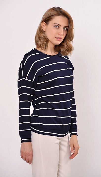 Джемпер с длинным спущеннным рукавом с круглым вырезом. Цвет: синий Состав:76%хлопок 22%полиэстер 2%эластан