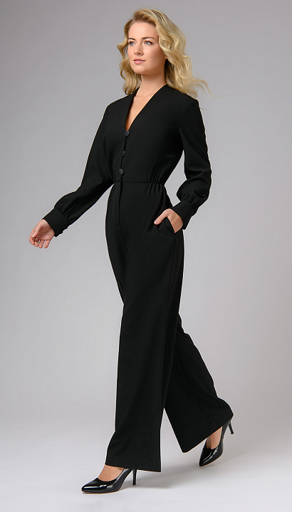 Комбинезон черного цвета в классическом стиле - универсальная вещь, в зависимости от обуви и украшений каждый раз будет выглядеть по-новому.