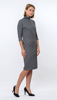 Трикотажное платье прямого силуэта с рукавом 3/4, с высоким воротником стойка Цвет: серый Состав: 44%полиэстер 36%нейлон 14%вискоза 6%спандекс