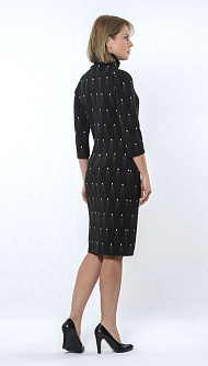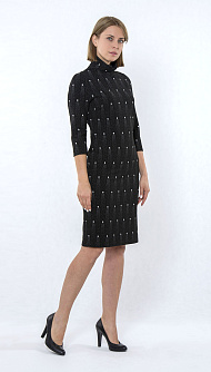 Трикотажное платье прямого силуэта , рукав-полуреглан, воротник-цельнокройная стойка. Цвет:чёрный в горох, Состав:65% полиэстер 34% вискоза 1% эластан