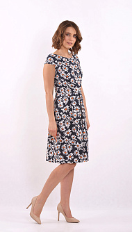 Платье отрезное по талии с вырезом "лодочка", с рукавом "крылышко". Цветочный принт Цвет:черный Состав:100% Хлопок