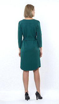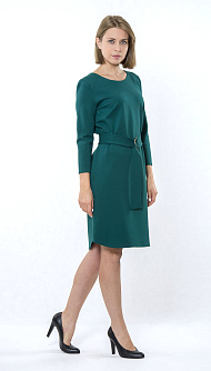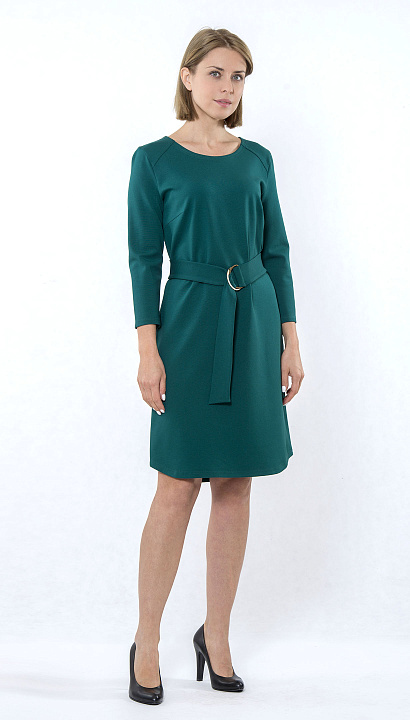 Трикотажное платье прямого силуэта, длина выше колена с поясом. Цвет: изумрудный Состав:62%вискоза 33%нейлон 5%спандекс
