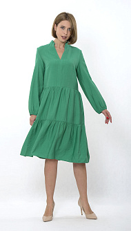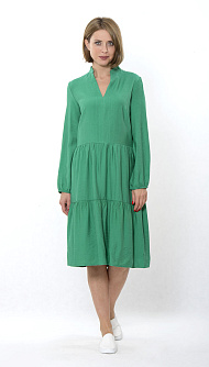 Ярусное платье, с воротником стойка, длинный рукав. Цвет: зелёный Состав:83%вискоза 17%нейлон