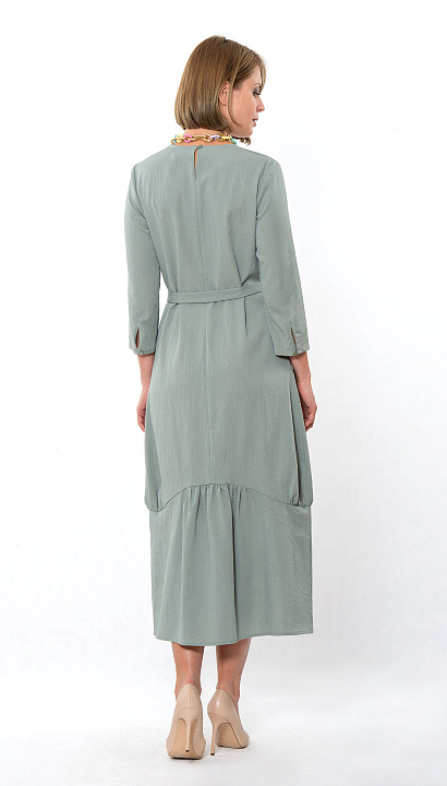 Платье-балон с фигурным подрезом и воланом, рукав 3/4 Цвет:светло-зеленый Состав:49%вискоза 34%полиэстер 17%спандекс