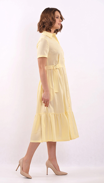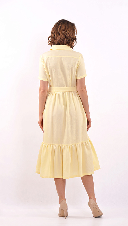 Платье отрезное по талии мятного цвета с коротким рукавом, с застёжкой спереди на пуговицах, с воланом внизу и поясом на талии. Цвет : жёлтый Состав:88%вискоза 12%нейлон