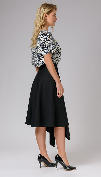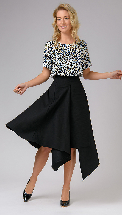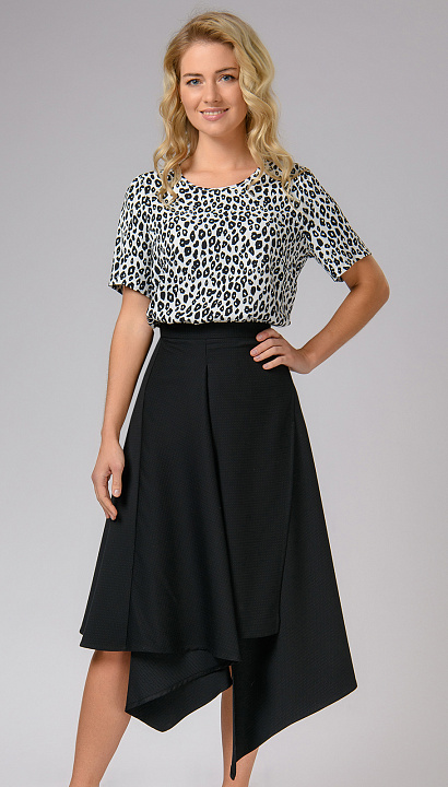 Блуза свободного кроя с коротким рукавом выполнена из нежной вискозы. Актуальный леопардовый принт за счет своей монохромности сочетается практически с любым цветом.