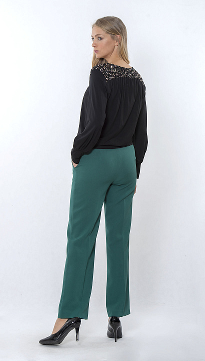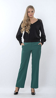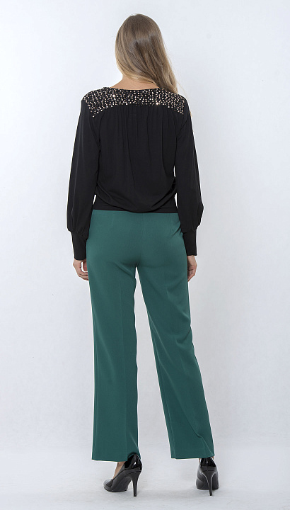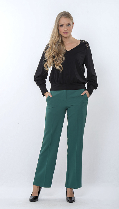 Чёрная блуза с V-образным вырезом и декоративными элементами на плечах