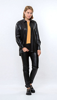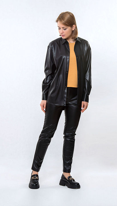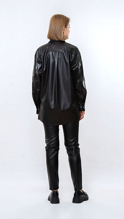 Чёрная кожаная блуза оверсайз с длинным рукавом