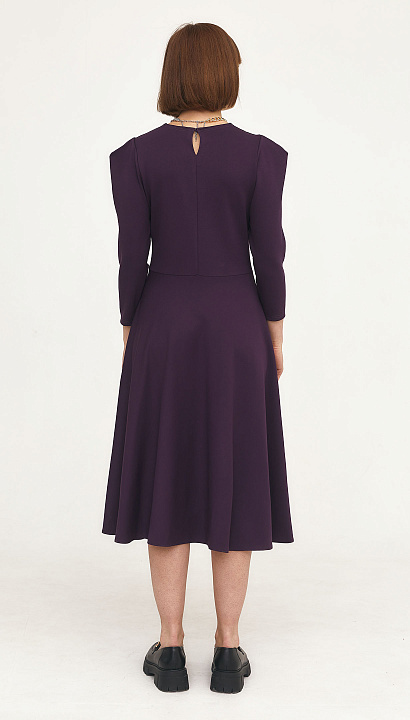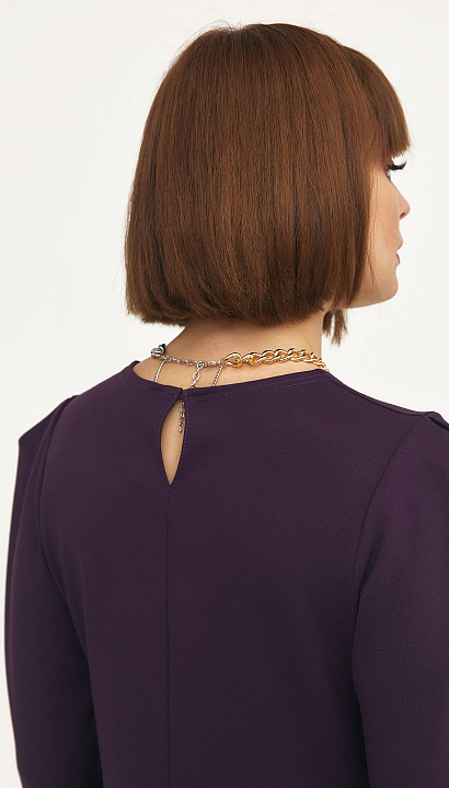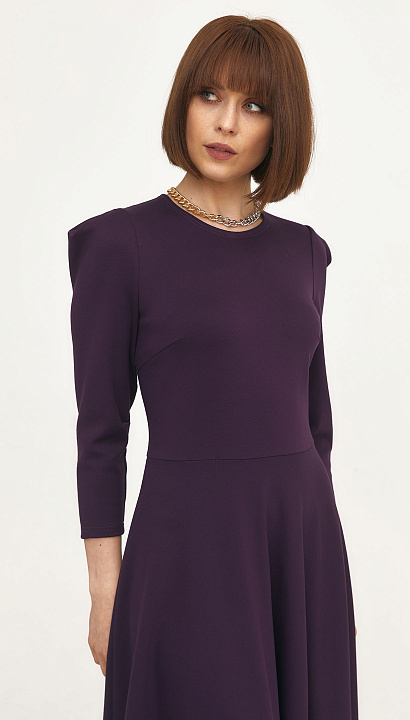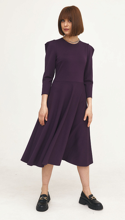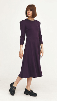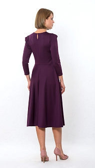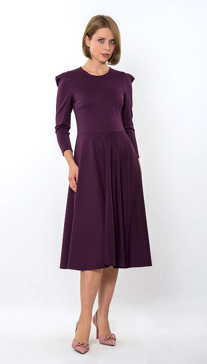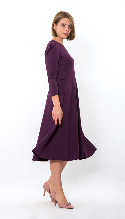 Трикотажное платье отрезное по талии, юбка "полусолнце", в боковом шве застёжка "молния", в верхней части рукава заложена мягкая складка. Цвет:баклажан Состав:75%полиэстер 20%вискоза 5%спандекс