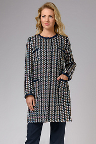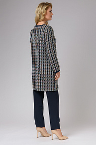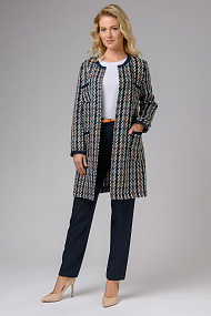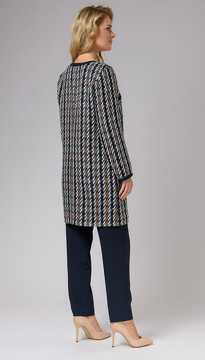 Удлиненный жакет в бело-сине-бежевых тонах с синей отделкой. Прекрасно сочетается с классическим стилем одежды, а также с Вашими любимыми джинсами.
