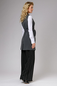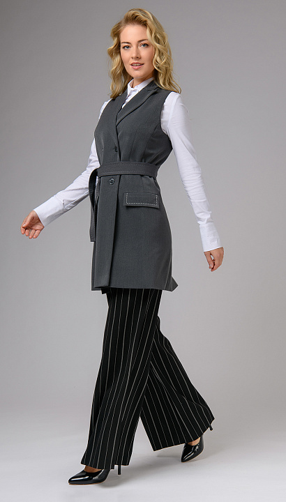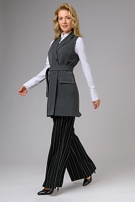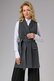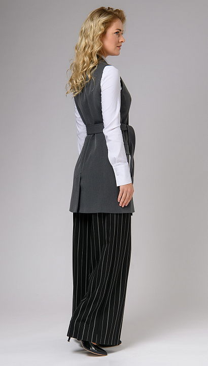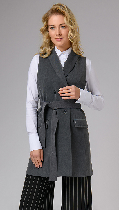 Двубортный жилет с отложным воротником. В комплекте есть тканевый пояс, который при желании можно заменить на кожаный. Особенность жилета - декоративные строчки.
