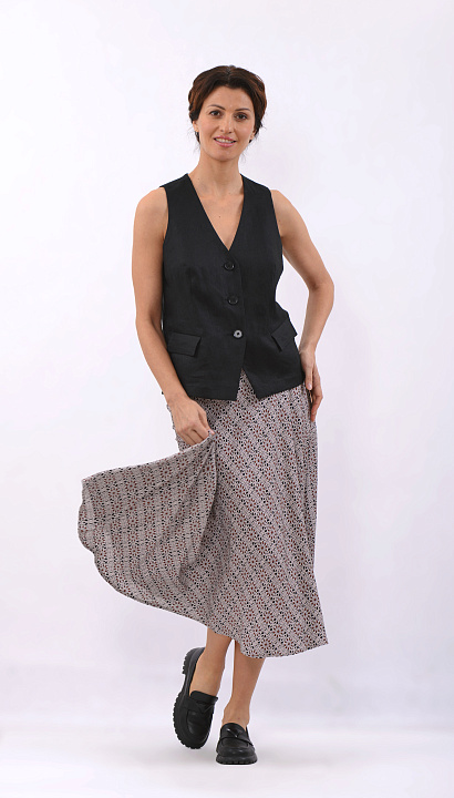 B. Обхват талии — расстояние на уровне линии талии в плечевых изделиях и расстояние на уровне верхнего среза в поясных изделиях. Мерка снимается плотно прижимая метр к телу на талии, формируя, таким образом, окружность.