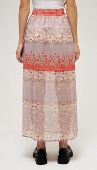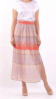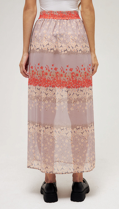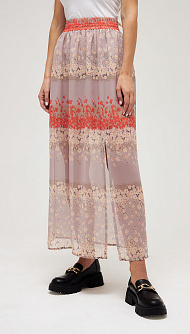 Длинная юбка из шифона с разрезом по ноге с поясом на резинке. Нижняя юбка до разреза. Цветочный принт Цвет:оранжевый Состав:100%вискоза