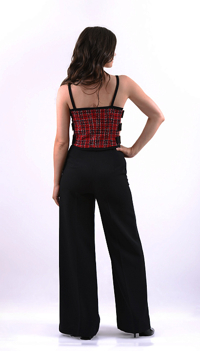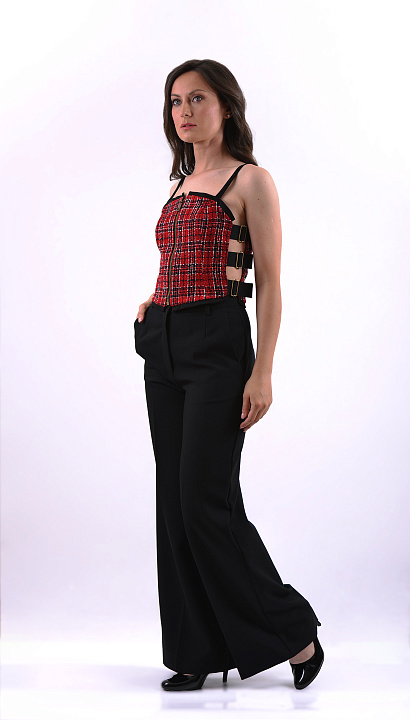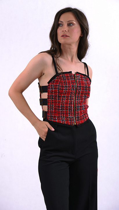B. Обхват талии — расстояние на уровне линии талии в плечевых изделиях и расстояние на уровне верхнего среза в поясных изделиях. Мерка снимается плотно прижимая метр к телу на талии, формируя, таким образом, окружность.